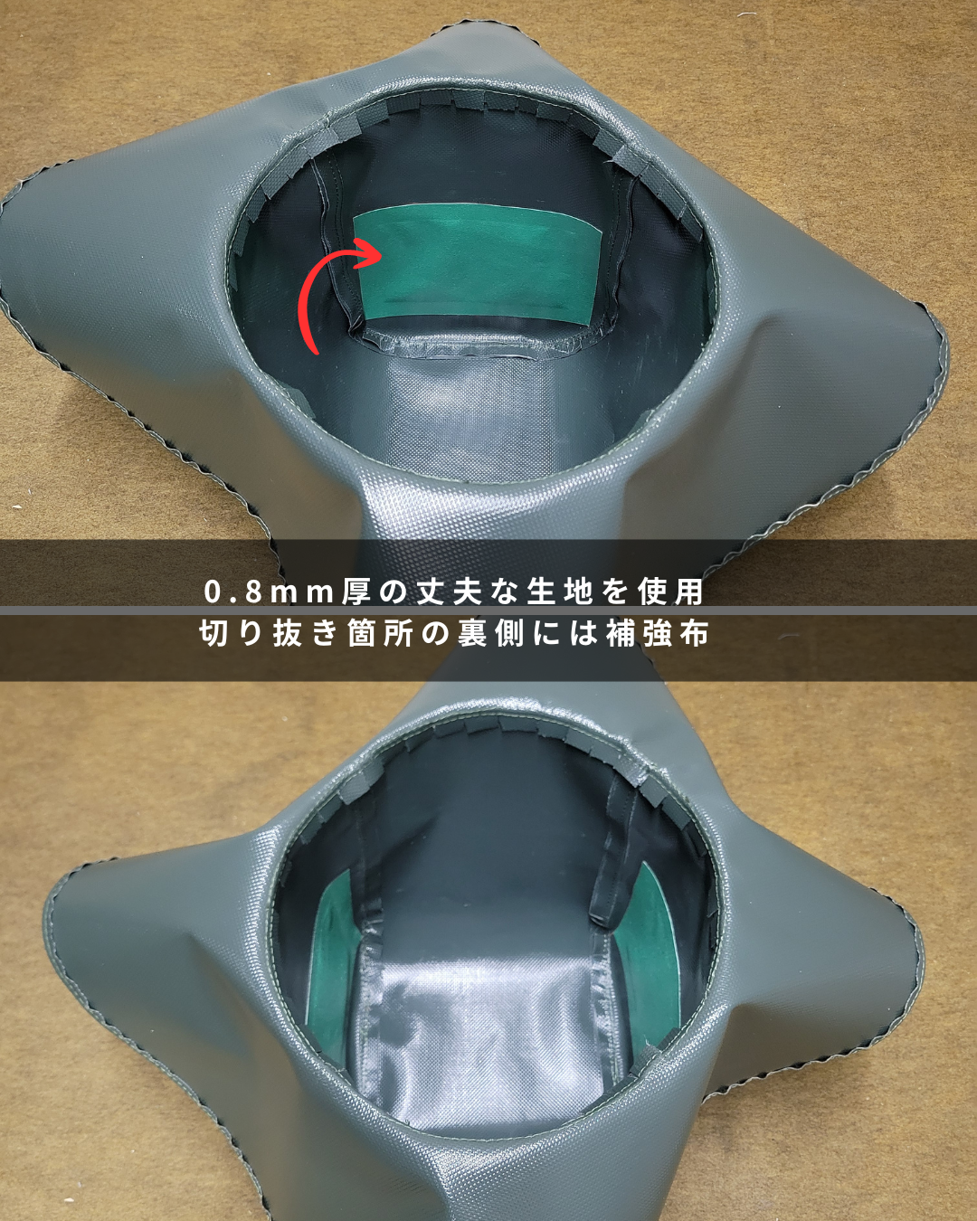 0.8mm厚の丈夫な生地を使用しており、